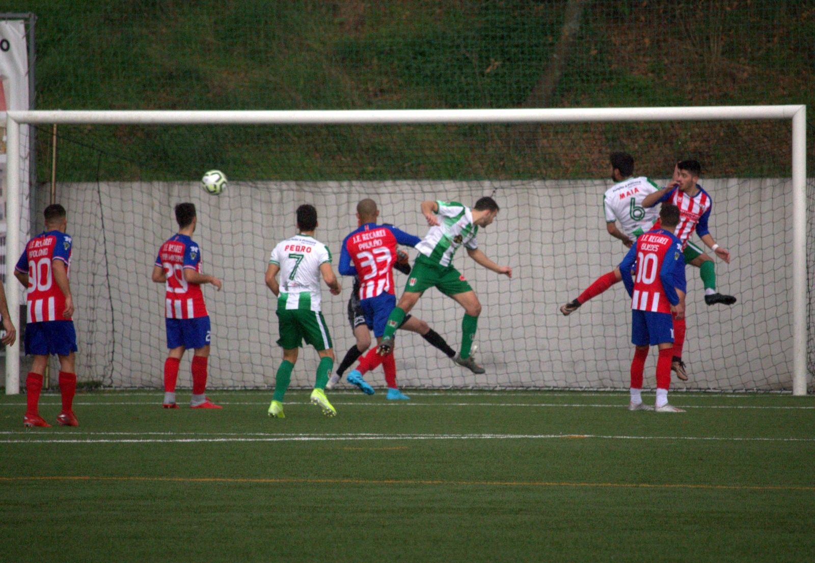 Num inicio de jogo equilibrado mas com muitas paragens e um futebol muito direto. Duas equipas muito preocupadas em não se desequilibrar, numa luta sempre intensa a cada lance. Aos 25 minutos uma grande contrariedade para os verdes e brancos, Diogo Resende a ver vermelho direto, deixando a equipa da casa em inferioridade numérica.